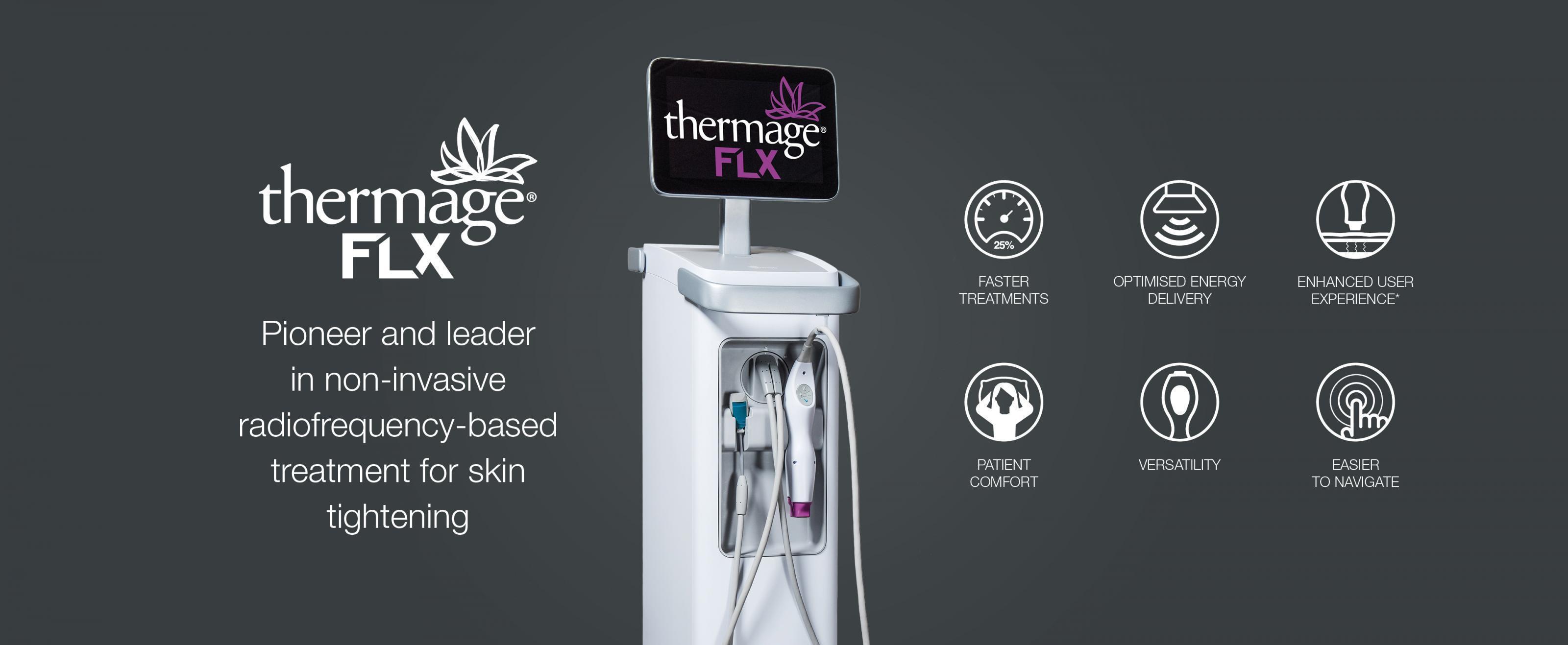 Thermage® FLX system is the 4th generation of monopolar radiofrequency indicated for non-invasive skin tightening and wrinkle reduction.