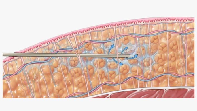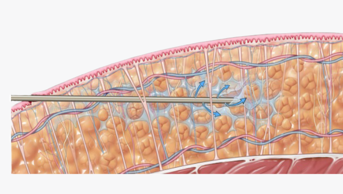 Adipose tissue removal during liposuction creates a space for retraction to occur. Postprocedure skin retraction is optimized when the superficial fatty layer is “thinned” with minimal trauma to tissues and the elastic subcutaneous connective tissue matrix is preserved. This allows the skin to naturally, retract and re-drape to the underlying frame during the healing process.7