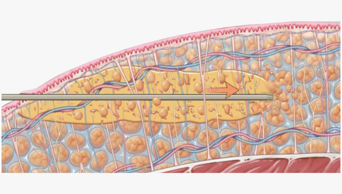 The design of the small-diameter cannula minimizes trauma to vessels, nerves and the fibrous tissue matrix when inserted to suction out the mixed fat cell and tumescent fluid emulsion (compared to second-generation cannulas).5,6